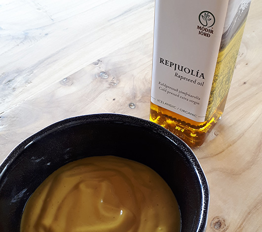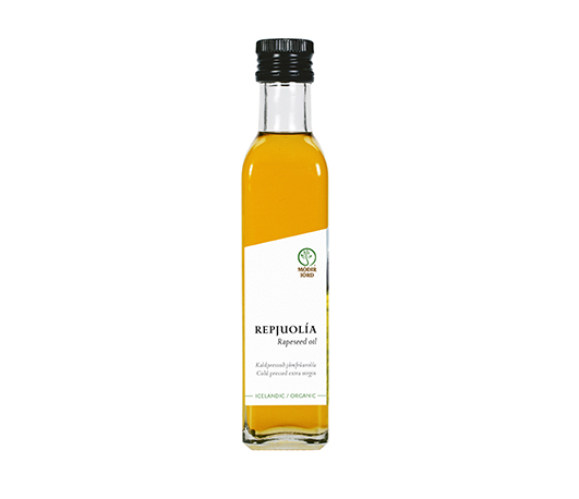 Kaldpressuð Repjuolía er einstaklega holl og hentug til matargerðar, jómfrúarolía sem hentar best að nota ferska í ýmsa matargerð. Fæst í 250 og 500 ml flöskum og 2,5L brúsum fyrir stóreldhús.