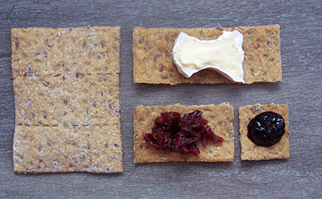 Our crispbread – Hrökkvi – our wholegrain crispy cracker, is flavored with Icelandic herbs and is best enjoyed with cheese and toppings such as our chutneys or jams.  Made of Icelandic barley and whole wheat, to be served in whole slices or smaller bits. Hrökkvi contains seeds to compliment flavor and health benefits of a great wholegrain.